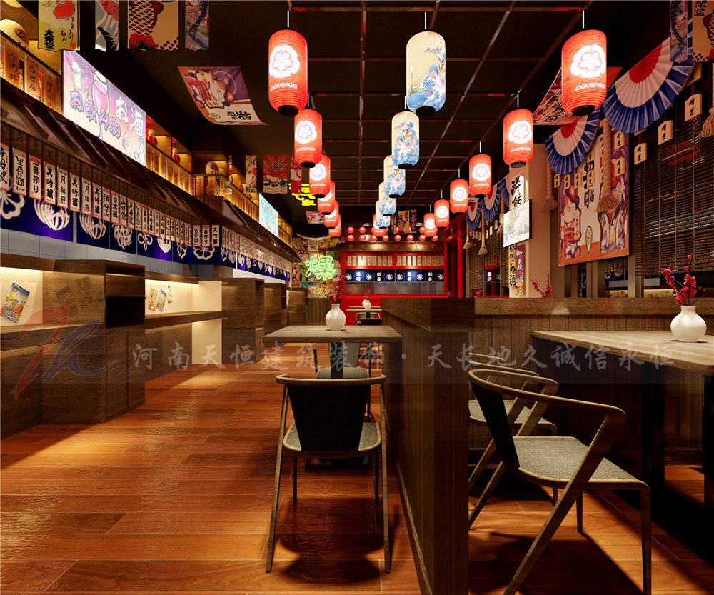 項(xiàng)目概況: 項(xiàng)目類型:餐飲 工程造價(jià):70萬(wàn) 項(xiàng)目面積:500㎡ 主案設(shè)計(jì):趙倩 項(xiàng)目地址:合肥中市街 簽約單位:河南天恒建筑裝工程有限公司 設(shè)計(jì)說(shuō)明: 本案以傳統(tǒng)居酒屋的風(fēng)格為基調(diào),提取部分建筑結(jié)構(gòu)的元素,以現(xiàn)代的裝飾手法去重新演繹,掛著紅色的燈籠,結(jié)繩的暖簾,從傍晚直到深夜,陪伴著稍顯疲憊的都市男女,讓人們?cè)谶@里褪下面具,卸下防備,輕松隨意地喝酒聊天享用的美食;來(lái)往的客人、旅人、陌生人,一幕幕人生百態(tài)于眼前展開(kāi)、收起、珍藏,在這里能看到最真實(shí)的世像百態(tài),這些人事與美味,簡(jiǎn)單平凡,卻蘊(yùn)藏著咀嚼不完的層層美味...